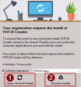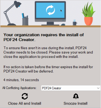Diese Meldung tritt auf, da manche Apps wie beispielsweise PDF24 Creator und Greenshot nicht wie üblich im Hintergrund aktualisiert werden können, sondern für eine Aktualisierung vollständig geschlossen sein müssen. Um zu verhindern, dass dies zu Datenverlusten bei der aktuellen Nutzung führt, fragt das System nach, ob es das jeweilige Programm aktualisieren darf.