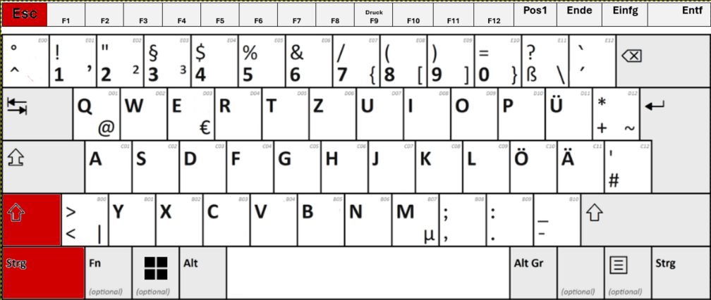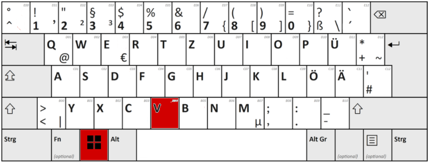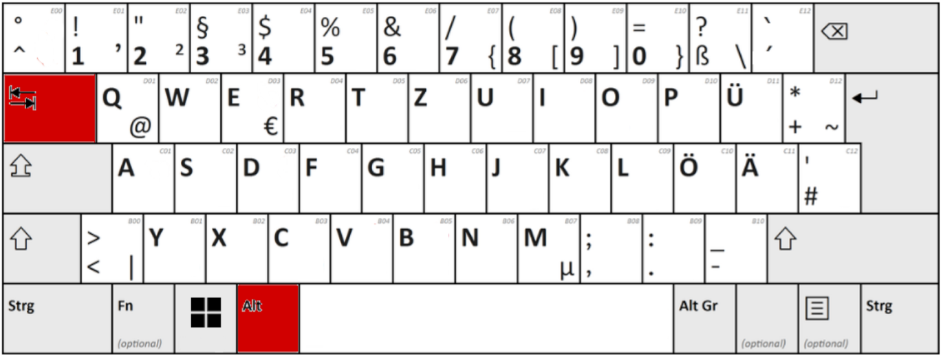 In der untenstehenden Tabelle sehen Sie die wichtigen Kombinationen im Überblick:
