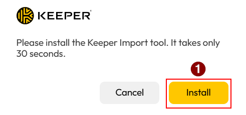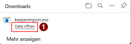 Es wird nun der "keeperimport.exe" heruntergeladen. Sobald die Installation abgeschlossen ist, klicken Sie auf "Datei öffnen" (1)